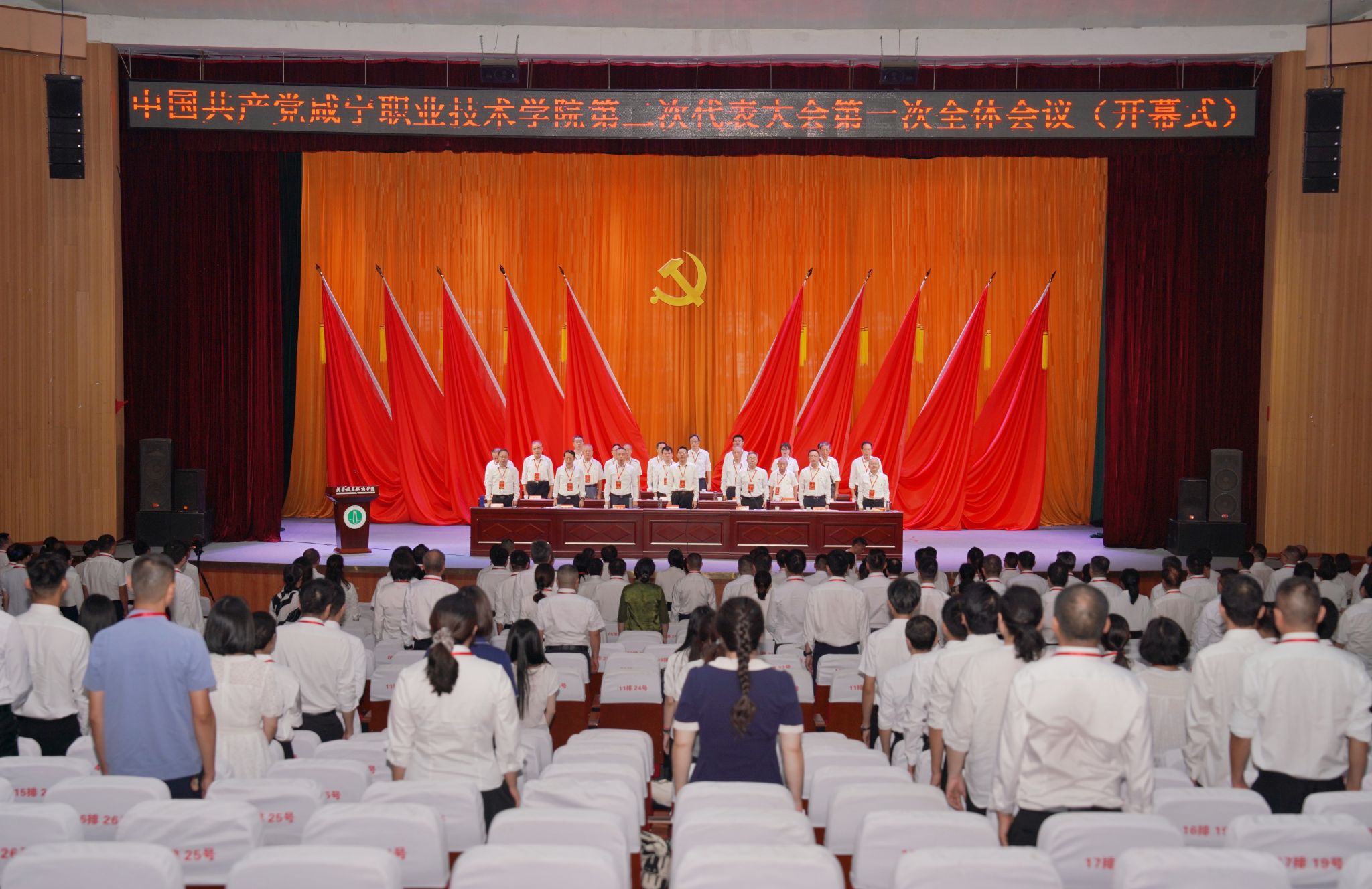9月12日上午,中国共产党咸宁职业技术学院第二次代表大会在科学会堂隆重开幕。会场气氛庄严而热烈,主席台帷幕中央金黄色的党徽光彩夺目,鲜艳的红旗分列两侧,代表们肩负重任,精神饱满,目光坚毅,步伐铿锵地步入会场。